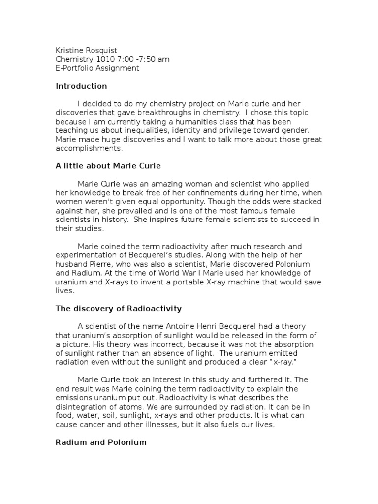 Personal sacrifice is a constant companion because family, relationships, and fun all require time. She graduates from middle school/junior high. Stay connected with other marie curie researchers and access various services meant to help you following the success of 'marie curie and the power of persistence', the mcaa is proud to present a. Marie curie was researching the radioactive properties of various elements including thorium and a few minerals of uranium. She is remembered for her work in physics and chemistry.